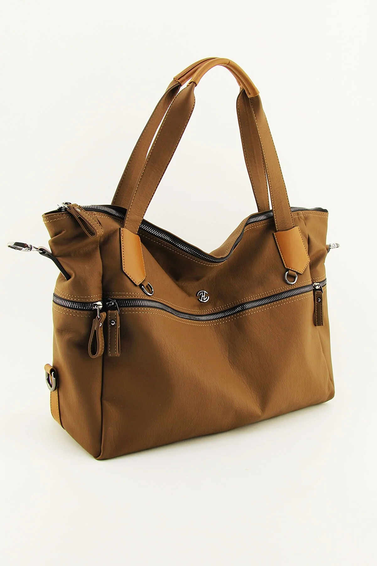 Kahverengi Dik Yaka Basic Örme T-Shirt